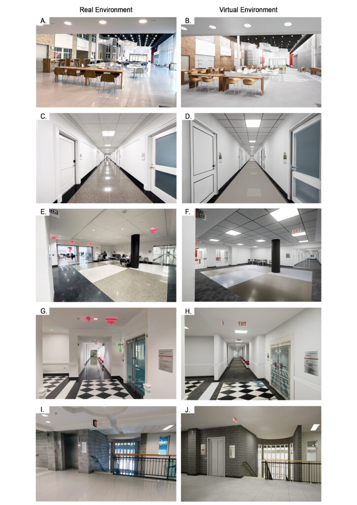 Virtual environments (VEs) are increasingly being used as a research platform for investigating human responses to environmental variables. While VEs provide tremendous advantages in terms of variable isolation and manipulation, and ease of data-collection, some researchers have expressed concerns about the ecological validity of VE-based findings; that is, their transferability to real-world contexts. In the current study we created a virtual replica of a real-world, multi-level educational facility, and compared data collected in the VE vs. the real-world environment as participants completed identical navigational tasks. We found significant differences in all of the measures used, including distance covered, number of mistakes made, time for task completion, spatial memory, extent of backtracking, observation of directional signs, perceived uncertainty levels, perceived cognitive workload, and perceived task difficulty. We also analyzed potential age-related effects to look for heightened VE/real-world response discrepancies among older adult participants (age 55 or over) compared to younger adults (18–30 years of age). This analysis yielded no significant age-by-condition interaction effects. Finally, we examined the spatial distribution of self-reported wayfinding uncertainty across the building floorplan, finding that areas in which uncertainty was most pronounced were similar between the real-world and VE settings. Overall, these findings indicate that while virtual reality can be a useful design research tool, caution is needed when interpreting and generalizing its results